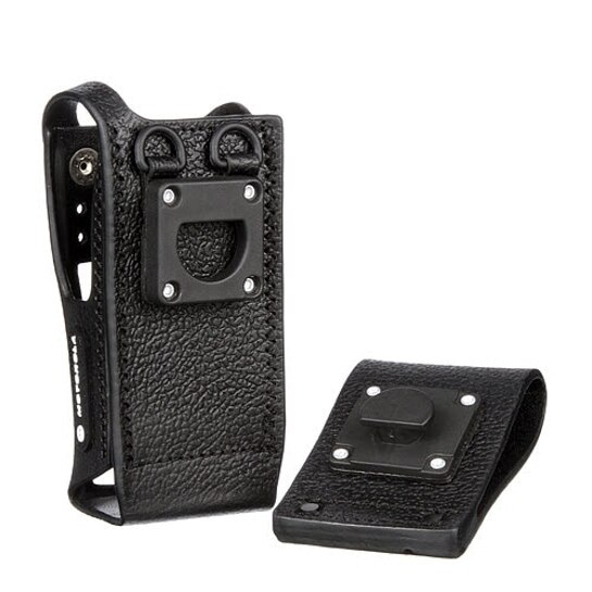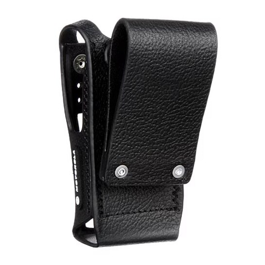 The Hard Leather Case (PMLN5840A) is compatible with XPR 7000 and 7000e series. This MOTOTRBO case includes a 3-inch swivel belt loop (full keypad model) which secures to a belt loop, allowing the case to swing freely from side-to-side. The swivel latch system also allows the radio and case to be removed from the belt loop by simply inverting the case and lifting it up and out.